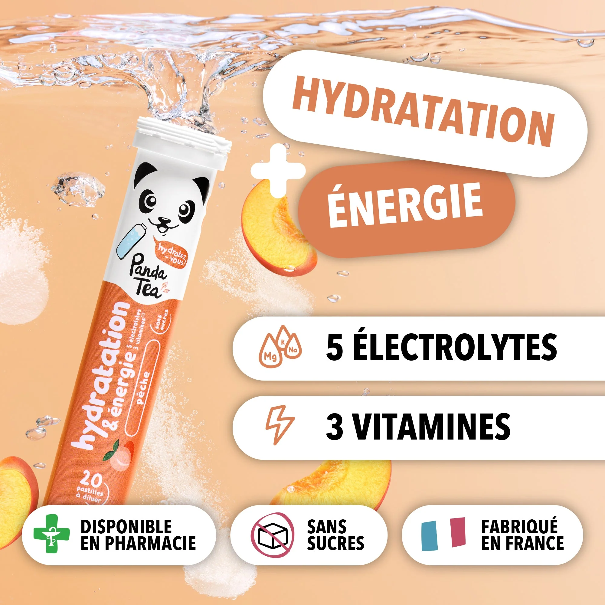 Les pastilles d’hydratation Panda Tea sont une solution innovante contenant des électrolytes et des vitamines spécialement conçue pour booster l’hydratation et l’énergie. Produit disponible en pharmacie dès aujourd'hui !